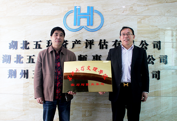 公司副经理郭睦庚(左)与湖北五环会计事务有限公司董事长共同为基地揭牌