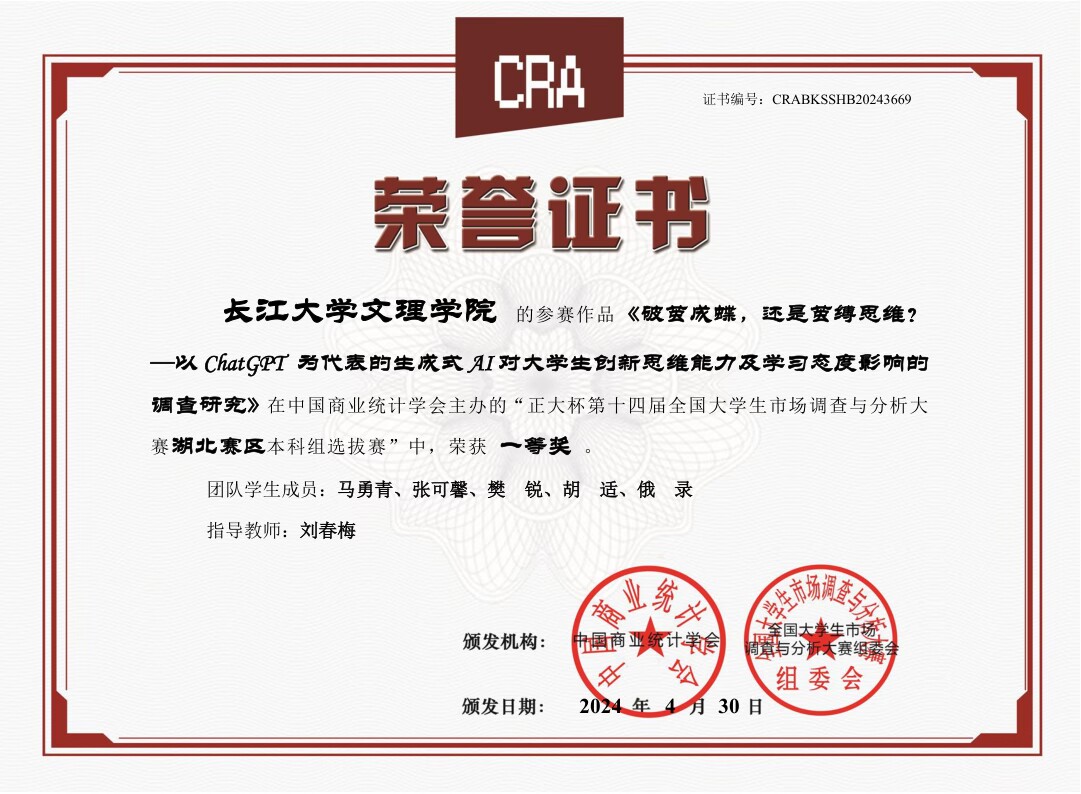 刘春梅老师积极带领员工参加全国各项赛事,并多次在国家级赛事中荣获奖项。2019年至2025年,连续7年指导员工在全国老员工市场调查与分析大赛中,荣获湖北赛区一等奖或二等奖。2022、2023、2024年指导员工获湖北省“挑战杯”老员工课外学术科技作品竞赛分别获省二、三等奖;在市场调查比赛指导的过程中,无论是调查方案的设计,还是数据分析的操作,都在员工身边给予科学的指导;为了给员工更好的现场表现,她带领员工跑去缝纫店为员工量身定制衣服,只为给员工更好的表现和展示。针对红色赛道精准扶贫项目和创业计划实践项目,她经常开着车带着员工跑商家,跟客户交流。联合老员工“三下乡”,带领员工深入农村展开调研,指导员工如何与农户交流,访谈,如何整理文件资料,撰写创业计划书,在挑战杯创业计划大赛中,带领员工深入企业和基层进行实地调研,让员工受益匪浅。在比赛指导过程中,她经常日夜陪伴员工,为员工指导答疑,用陪伴和行动给员工克服困难的勇气和力量。