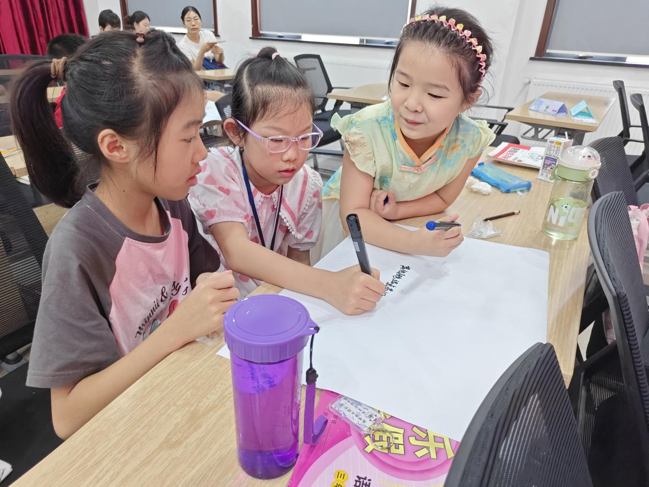 第二场活动为“快速联想—毒品”的同伴教育。首先志愿者为小朋友们讲解什么是毒品以及毒品的种类并展示具体的毒品照片,随后采取分组的形式,利用大白纸讨论、团队合作等多种形式的参与式同伴教育,使小朋友们了解到毒品对个人、家庭、社会的危害。最后志愿者通过精美的插图告诉小朋友们应该如何预防毒品、远离毒品,保护自我的身心健康。