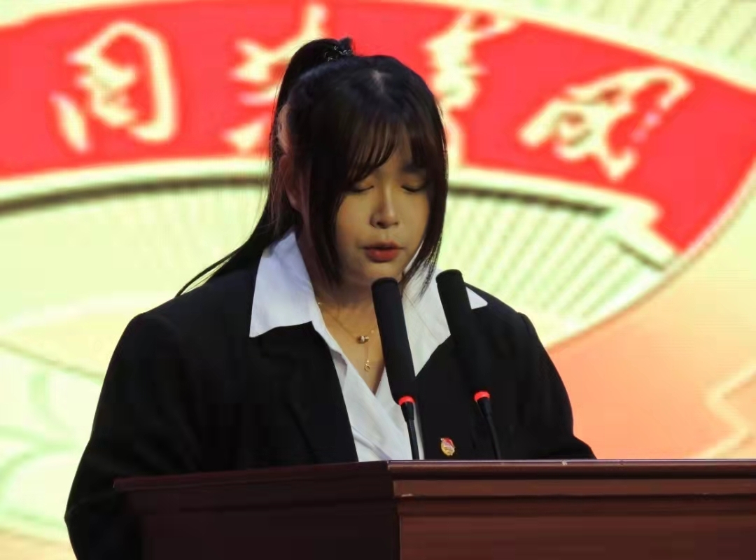 副书记李佩珊宣读员工会规章制度,主持人郭笑帆带领同学进行入职宣誓,同学们举起右手进行庄严宣誓,响亮的喊出服务同学服务公司的口号。