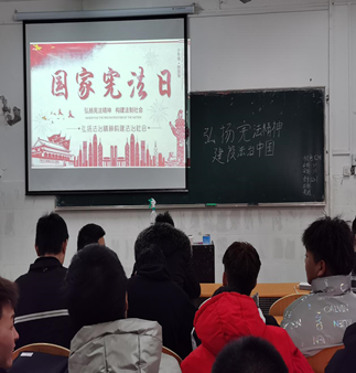 本网讯(员工记者周海静)为弘扬宪法精神,在国家宪法日到来之际,12月5日,高职部各个班级开展以“学宪法,讲宪法”为主题的宪法宣传日讲座。本次班会由各班团支书组织。