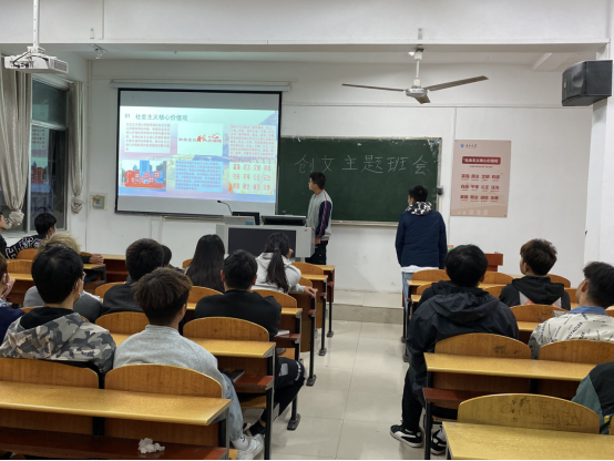 此次班会主要以思想道德建设和环境建设为中心展开,文明是一种荣誉更是一种责任,城市的创文工作离不开我们每一个有志青年的知晓、参与和奉献。人生可以平凡但不可以平庸,用自己的行动来带动大家为我们的社会出一份力。积极响应城市号:做文明人、办文明事、说文明话。要想改变我们的城市不仅仅是改变城市的面貌,更应该将精神文明传播。创文明城市应从脚下起步,从身边一点一滴做起,从你我做起,作为城市的“新生力量”我们更应该严格要求自己,积极争做文明先锋!贡献出自己的力量,让我们的城市愈来愈美丽!