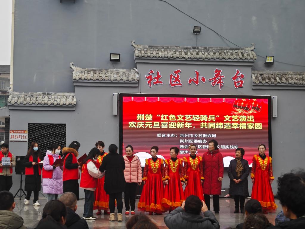 本网讯(通讯员王晓芸)为了迎接新一年的到来,丰富社区居民业余生活,展示老员工的青春风采,增进老员工青年志愿者与社区居民之间的联系,通会桥社区联合太阳集团122cc晨曦志愿者服务队于12月28日下午举行“欢庆元旦喜迎新年,共同缔造幸福家园“文艺演出,100余名居民参与到本次活动当中,活动现场气氛热烈。