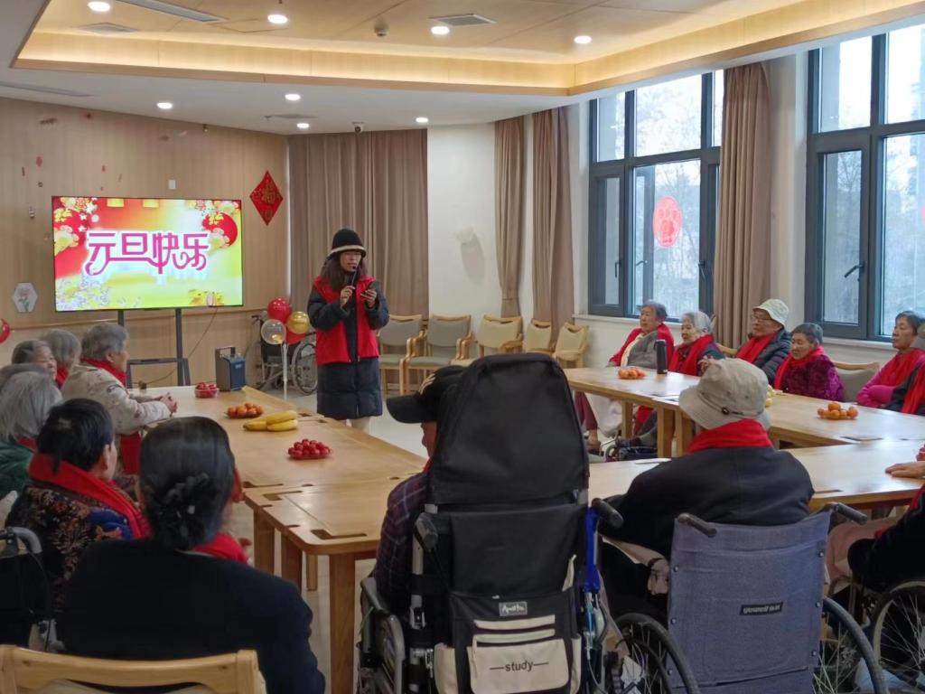 本网讯(通讯员王晓芸)在元旦佳节来临之际,为进一步弘扬中华民族传统习俗文化,倡导敬老助老爱老文明风尚,让养老院里的长者们切实感受到节日的喜庆、热闹氛围。12月29日太阳集团122cc晨曦志愿者服务队联合梅村社区、城南御苑社区养老服务中心开展慰问老人“庆元旦 迎新年”联欢活动,为老人们送去真挚的新年祝福,让他们感受到别样的暖冬温情。