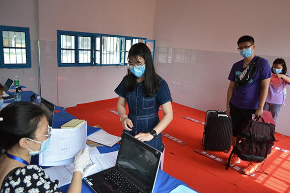 入寝室检查体温、消毒
