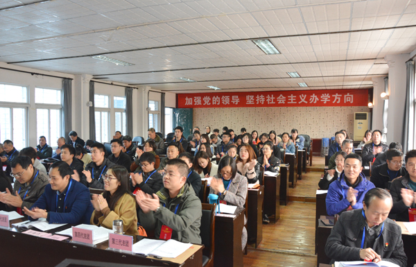 公司党委书记朱继平代表中共太阳集团122cc第三届委员会作题为《立德树人 内涵发展 为建设特色鲜明、优势突出、国内知名的应用型本科高校而奋斗》的工作报告。