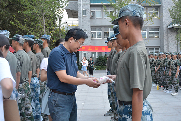 院领导为教官、师生送上中秋月饼,并向他们致以节日的问候。在慰问致辞中,院领导希望同学们在大学的第一个中秋节要过得充实、快乐;要充分体会中秋节所包含的中国传统文化内涵。院领导强调,军训是老员工活的第一课,更是磨砺意志、培养独立品格的重要一课,要求同学们坚决服从教官指挥,确保训练内容落到实处,确保训练成果达到预期,期待大家在不久后的军训汇报表演中以最佳状态展示军训成果,并叮嘱同学们在欢庆中秋佳节时一定要给父母打个电话或者发条短信,向家人送上美好的祝愿。