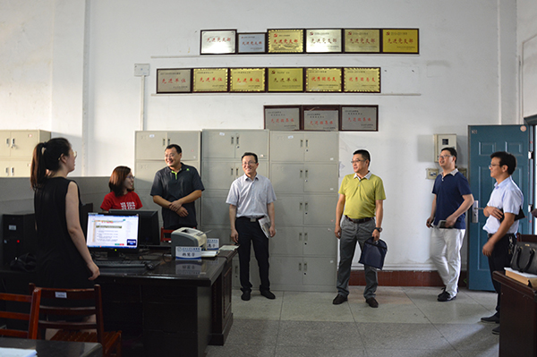 王文凯(前排右一)、朱继平(前排中)实地查看校园环境