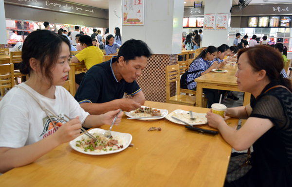 和家长一起品尝大学第一顿饭