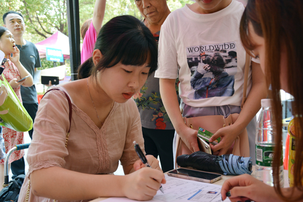 在新生签名墙上留名
