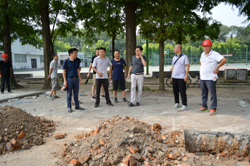 梅平、李应军一行检查西校区环境改造工程