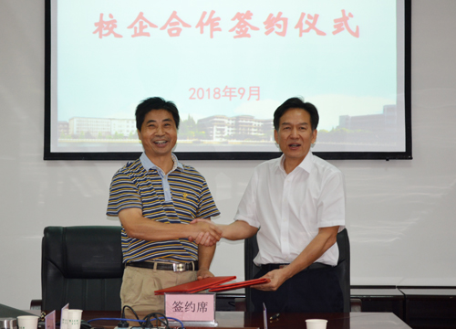 郭睦庚与姚定贵代表校企双方签署合作协议。根据协议内容,双方将合作共建员工实践教学基地和青年教师实践培训基地,开展科研合作与文体交流,共同探讨人才培养与选用机制。