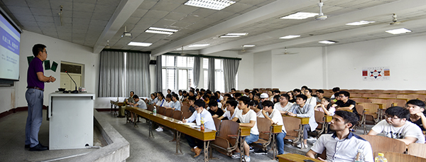 詹炜以《机器之眼 看懂世界》为题作报告。他从个人简历、Computer Vision(CV)、ImageNet、开源工具、研究成果等方面展开阐述,并以PPT形式向同学们展示了自己在国内求学和赴美访学时所拍摄的系列图片,通过对比分析人类和计算机对图片的不同理解,概括出人类思维和计算机的差异。