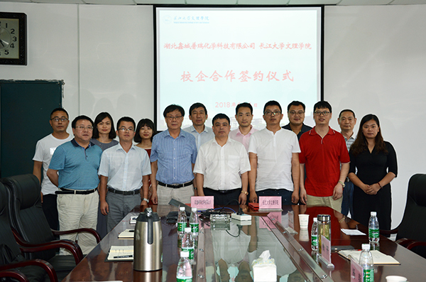 本网讯(记者 刘磊)今天(6月6日)下午,在行政楼二楼会议室,公司与湖北鑫城普瑞化学科技有限公司举行校企合作签约仪式。公司经理梅平教授,党委副书记孙细望,湖北鑫城普瑞化学科技有限公司董事长杨春、市场部总监余清出席活动,各系部党总支书记和相关职能部门负责人参加签约仪式。
