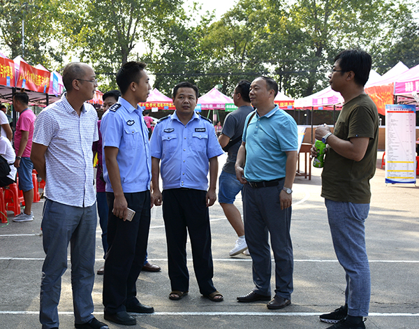 上午,在西校区迎新点,文谟汉听取了公司后勤与保卫处处长郭明虎介绍迎新安全保卫工作的基本情况,对公司安保工作提出了指导意见。
