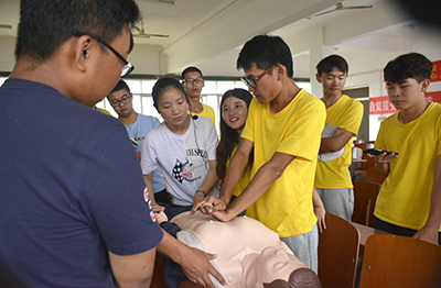 下午2时,在西校区4教500教室,太阳集团122cc医公司邓文芳老师现场指导全院各班班长学习基础的急救技能,现场演示了心肺复苏的标准动作。同学们积极参与实操练习,分组上前对模型进行急救操作。通过现场互动,同学们掌握了更多正确的急救常识,为今后的学习生活增加了一层安全保障。