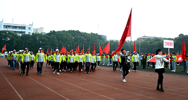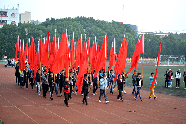 “护我国旗,扬我国威!”高擎鲜艳的五星红旗和院旗,英姿飒爽的国旗护卫队、院旗队队员依次经过主席台,整齐一致的步伐、气势磅礴的口号、刚健有力的摆臂,展示了新时期青年学子昂扬向上的精神风貌,赢得主席台上阵阵掌声;鲜花队、红旗队迎着晨光,精神抖擞的迈步向前,红艳如火的旗帜在秋风中高高飘扬,队员们笑容灿烂、神情激动,他们以饱满的热情、奋进的姿态尽情展示着青春的风采;裁判员队伍踏着旋律稳步前进,他们将秉持公开、公平、公正的原则,以奉献意识和敬业精神为赛事护航;各系部代表队以别出心裁的亮相、生动有趣的造型和拼搏奋进的姿态,诠释最美体育精神,为2017年的运动会写下别样的金秋记忆。