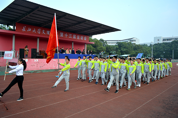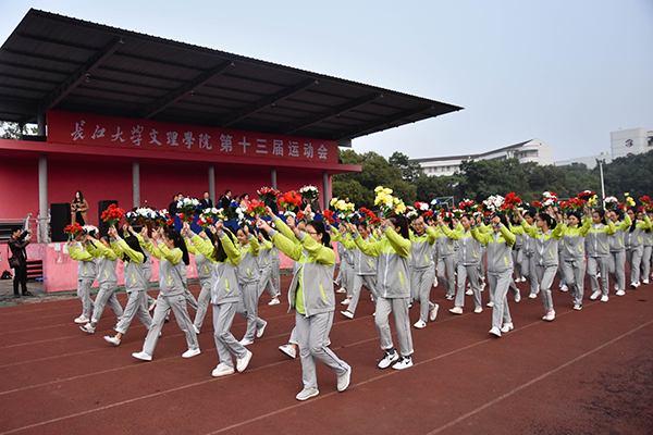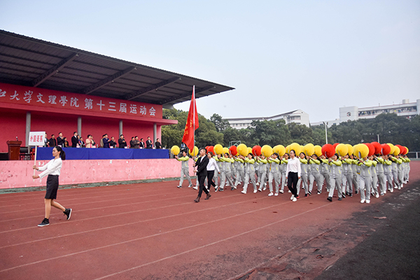 本网讯(见习记者 鲁洋行 记者 刘磊)秋雨初霁,满园生鲜。10月20日,第十三届运动会在绿意葱茏的西校区如期举行。开幕式上,国旗队、院旗队、鲜花队、红旗队、裁判员队及7个系部代表队,伴随激昂的运动员进行曲依次经过主席台。
