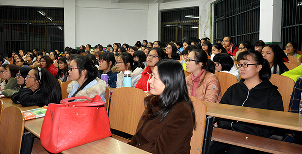 本网讯(记者 刘磊)12月6日晚,2教103多媒体教室气氛热烈,座无虚席。外语系教学技能经验分享交流会在此举办,优秀学姐崔悖淋面向2016级全体师范生做了经验分享。