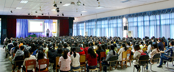 外语系系主任许晓艳与500余名师生现场聆听。