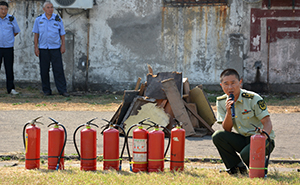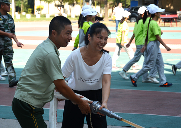 15时20分,同学们在田径运动场集合,聆听荆州区消防中队中队长李杰讲解灭火常识,现场观摩灭火示范性操作演示,参加灭火实践。湖北省教育厅检查组组长、湖北省教育厅离退休干部处处长黄念平、公司经理梅平来到现场观摩灭火演示活动,并分别发表讲话。