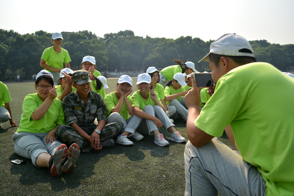 开学典礼开始前,新生纷纷和教官合影,留下美好纪念。