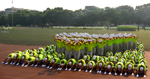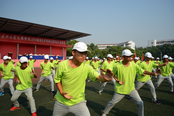 典礼在庄严的国歌声中拉开序幕。阅兵式上, 20个新生军训方队迈着整齐划一的步伐依次通过主席台,展示了10天的军训成果。分列展示、手语操《感恩的心》、军体拳表演等赢得了雷鸣般的掌声。