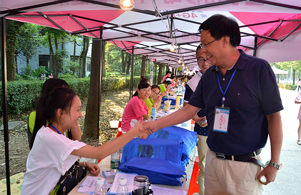 本网讯(记者 刘磊)9月11日下午5点,迎新第一天顺利接近尾声。迎着美丽的秋阳,经理梅平带领公司办公室负责人再次深入迎新现场,了解新生报到情况,慰问辛勤工作在一线的教职工和志愿者同学。