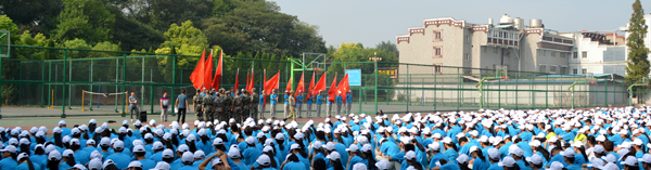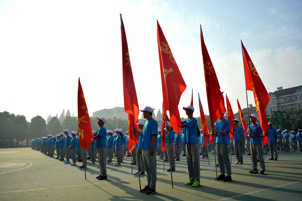 本网讯(记者 吴秀丽)9月13日上午,公司党委书记王金琼在西校区和城中校区为军训方队授旗,宣布2016级新生军训正式开始。
