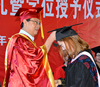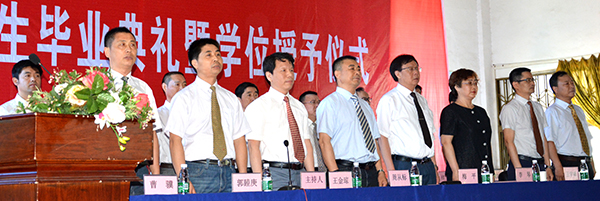 梅平、王金琼、李琴、郭睦庚、王学峰、曹骥分别为毕业生颁发学位证书、援正流苏