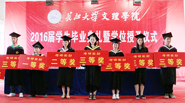 在欢乐的气氛中,领导为优秀毕业生代表、考研学子颁发荣誉证书。