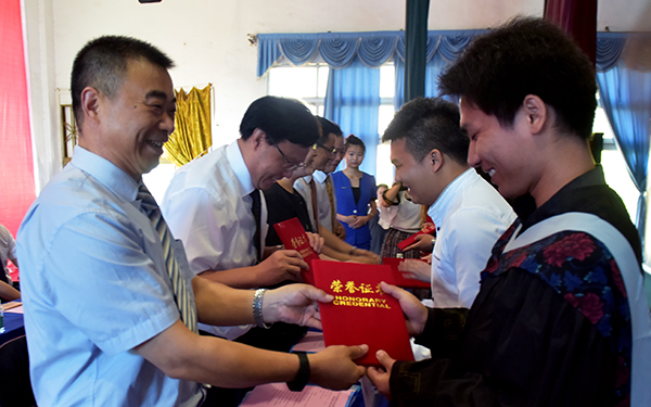 周从标(左一)为优秀毕业生颁奖