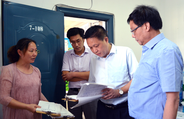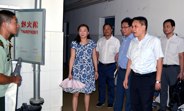 会后,黄念平一行在梅平的引导下,深入校园安全保卫监控室、员工寝室、新生消防演练场地进行了实地考察走访。在女生7舍楼管处,黄念平仔细询问宿舍管理制度,查看了寝室值班登记表,在男生寝室5舍,黄念平一行走进员工寝室,认真查看员工门窗、床铺、洗漱间等设施。在新生消防演练场地,黄念平提醒新生注意人身和财产安全,注意防火防盗,不参与网络借贷。