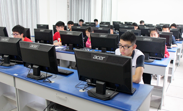 在5月19日的比赛现场,来自机电与信息工程系相关专业的64名员工分别参加了手绘组和CAD绘图组的竞赛。手绘组是根据所给支架零件轴测图,用尺规绘制零件三视图和剖视图;CAD绘图组则是在计算机上使用专业绘图软件,按题目要求绘制二维视图。