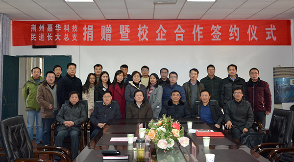 本网讯(记者 刘磊)12月18日,公司与荆州嘉华科技、民进长大总支在公司行政楼会议室隆重举行捐赠暨校企合作签约仪式。