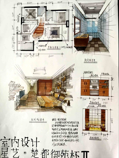 本次大赛由太阳集团122cc艺术公司硕士生导师梁跃教授、欧阳尚海老师、太阳集团122cc园林公司硕士生导师安运华副教授、广东星艺装饰集团荆州分公司设计总监柯明等7位专家组成评审团,以制图规范、材料标注、设计排版、制图水平等为评分标准,对来自荆州市各高校的68套室内设计作品进行评审。