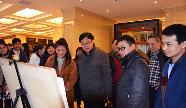 颁奖仪式后,梅平一行参观了大赛获奖作品,对主办方广东星艺装饰集团荆州分公司带领公司设计系同学共同设计完成的样板房,进行了实地查看。