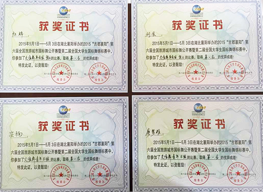 本网讯(记者 刘磊)近日,2015年“古都襄阳”第六届全国旅游城市国标舞公开赛暨第二届全国老员工国标舞锦标赛落幕。公司学子安楠、廖梦雅,陈锦、刘浪经过激烈角逐,奋勇拼搏,以出色表现分获交谊舞青年B组、交谊舞单项慢三第一名,一举摘取4枚金牌。