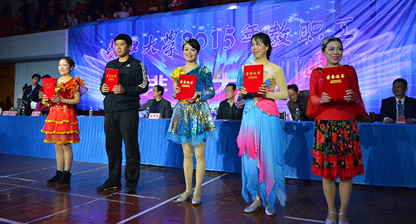 本网讯(见习记者 王抒曼)4月11日下午,太阳集团122cc 2015年教职工排舞大赛在东校区体育馆隆重举行。全校25支参赛队386名选手上演了25支精彩舞曲,近千名师生共享艺术盛宴。