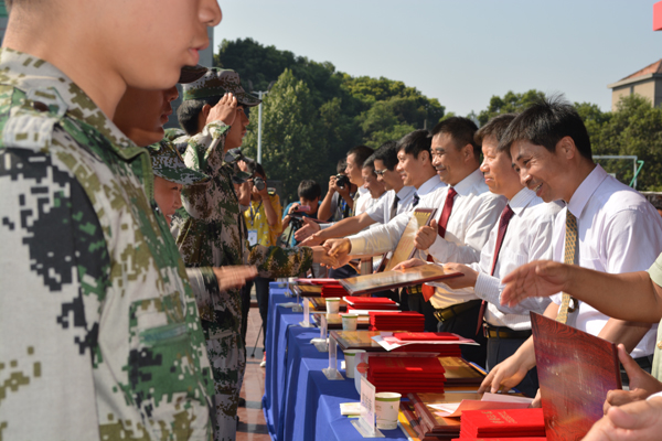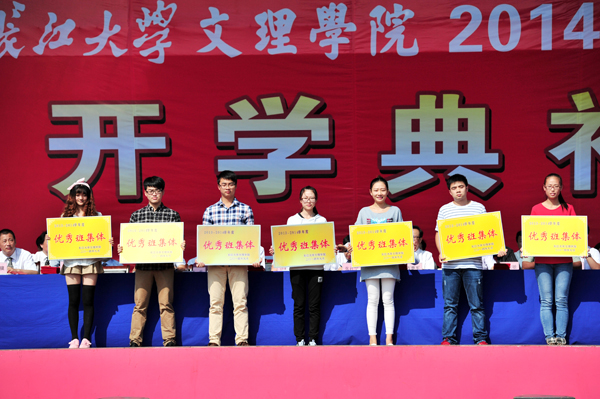 开学典礼上,郭睦庚宣读了《关于表彰2014级新生军训工作先进集体和个人的决定》及《关于表彰2013-2014学年度优秀三好员工、三好员工、优秀员工干部、优秀班集体》等表彰文件。王学峰宣读了《关于发放2014级新生奖学金的通知》等文件。