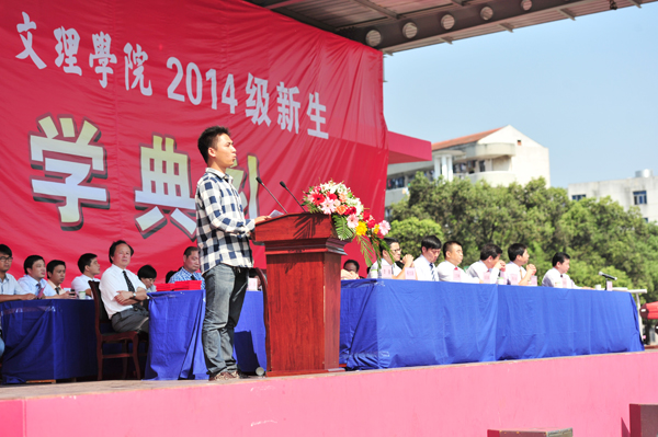 王金琼代表公司对2014级新生表示热烈欢迎,祝贺他们成为“文理人”。他说,自己的情怀就是希望经过长大文理‘熏染’的每一位青年,无论将来身处偏僻的乡村,还是喧嚣的都市,都能散发出一种独特的气息。这就是自尊、自重、自信、自强,要让这种气息成为融入骨髓的血液,与生命共存,那就必须共同坚守大学的灵魂!