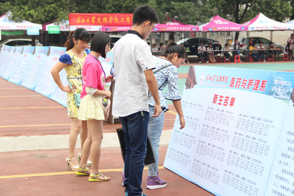 校园里,人头攒动,火辣的太阳丝毫没有降低志愿者的工作热情,校园各处总能看到身着粉红色T恤的志愿者活跃的身影,及时为新生及家长引路、送水、搬行李,为他们送去温暖。