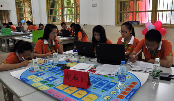 本次大赛中由66名参赛队员组成13支队伍分别经营企业。在团队内部设置一名 CEO、财务总监、营销总监、生产总监与采购总监。比赛中,各团队成员密切配合,围绕产品的市场规划、市场预测、运营过程等方面进行细致分析,并作出正确、合理的决策。通过两天的激烈角逐,“黑夜彩虹”队一路过关斩将,力挫群雄,勇夺魁首。