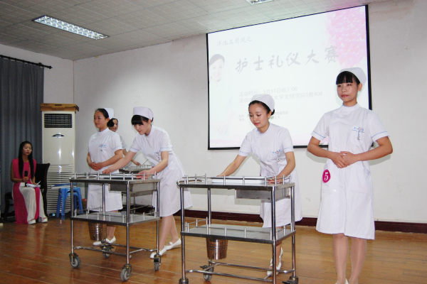 本网讯(记者 周芳 员工记者 高昌飞)“淡妆上场、身形挺拔、抬足有力、柔步无声、着装规范……”5月17日晚,泮池五月风系列活动之护士礼仪大赛圆满落幕,护理专业6个班的员工向大家展示了职业护士所应具备的仪表、体态、持物、推车行走等基本素养。