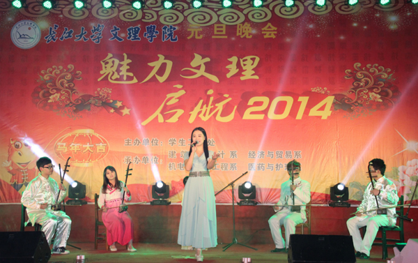 本网讯(记者 周芳 见习记者 郝威)一元复始,万象更新。12月24日晚,“魅力文理 启航2014”元旦晚会在公司西区隆重举行。公司领导沈光明、袁先海、王金琼、郭睦庚、汪邦柱来到现场,与3千余名师生一起观看晚会。