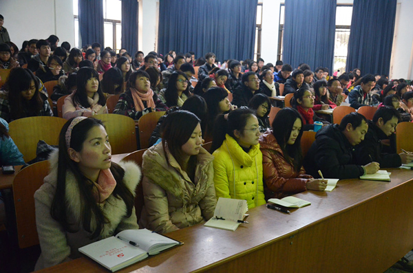 袁书记将讲座内容与当前时政治热点紧密结合,运用图例、视频、统计数据等新颖形式,把十八大报告的精神实质生动全面地进行诠释。他说,十八大报告思想深刻,内容丰富,着眼于党和国家长远发展,进一步明确了我国今后一段时间的发展目标,把科学发展观确定为党的指导思想,对今后如何加快建设小康社会、全面提高党的建设科学化水平做出了全面部署。