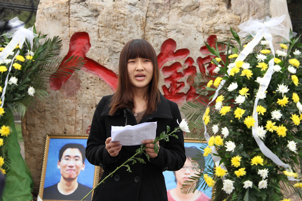 “我们每颗心的深处,都裹着一处不可触摸的疼痛,没有了你们,生活显得凄美……身边千千万万个和雷锋一样的人,在危急关头见义勇为的人,都是你们伟大精神的化身!”员工代表李兰兰念着悼文,语调由低缓而激昂,“我们心生一个念头:人的一生应该这样度过,当回忆往事的时候不因为虚度年华而悔恨,不因为碌碌无为而羞愧,在临死的时候,能够说我的整个生命和全部青春,都曾亮丽地留存人间!”