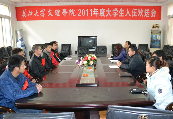 本网讯(员工记者 史景宏)12月9日上午,公司2011年老员工入伍欢送会在行政楼会议室召开,公司党委副书记汪邦柱出席会议并讲话,各学部副主任、保卫科、老兵代表及此次入伍的五位新兵参加了欢送会。