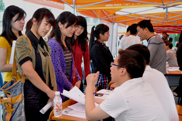 本网讯(记者 刘磊 员工记者 刘小芹)5月14日,公司2011届毕业生招聘会在公司体育场举办。来自长三角、珠三角、中部省市共计48家企业前来公司选才,为应届毕业生提供了2369个就业岗位。院领导沈光明、王金琼、郭睦庚亲临招聘会现场,深入用人单位和毕业生中详细了解招聘情况。学工处、各学部及相关部门负责人陪同。