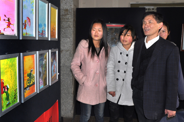 一幅幅精巧的艺术作品吸引了无数过往师生的眼球,沈光明仔细观看了同学们的作品,并对秦巨森等同学的作品给予了高度评价。他指出,09级艺设班是一个才子云集的班级,艺术展不仅让员工的作品得到了展示,还能使大家在艺术展的筹备的过程中得到锻炼,并希望在场的同学们多开展专业展览,加强各专业间的交流,共同学习。